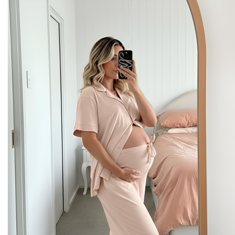 Bin im 8. Monat und hab lange nach einem Pyjama gesucht, der am Bauch nicht spannt. Dieser sitzt einfach perfekt egal wie ich liege <3